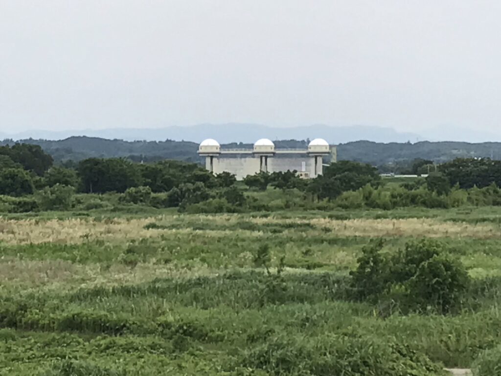 丁度、荒川パノラマ公園から見ると真正面に玉作水門が見えますが、水門から大芦橋の距離は徒歩で20分くらいかかります。大芦橋を渡るのも20分くらいかかるのでこの距離を歩くのに1時間かかるかも知れません。
